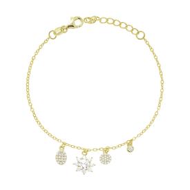 Bracciale con catena rolò con palline diamantate e accessori pendenti a forma di stella con finitura liscia e lucida.