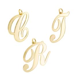 Ciondolo a forma di lettera maiuscola in corsivo, iniziale nome con finitura liscia e lucida.