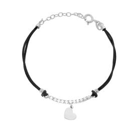 Bracciale catena forzatina con accessori in linea a forma di cuore con finitura lucida e con cubic zirconia bianchi incastonati.