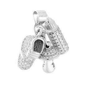 Ciondolo a forma di Piedino Bimba e Bimbo con Zirconi incastonati.