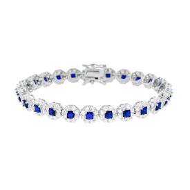 Bracciale Tennis con cubic Zirconia, cinque Blu Zaffiro alternati a uno bianco su montatura 4 Griffe.