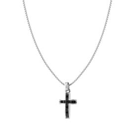 Collana con catena Veneziana Tonda e accessorio pendente a forma di croce con finitura satinata e lucida e crystal neri incastonat...