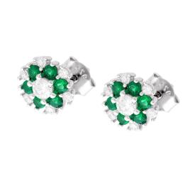 Orecchini chiusura monachella con accessorio ovale con zircone Verde Smeraldo montato su 4 griffe contornato da zirconi bianchi.