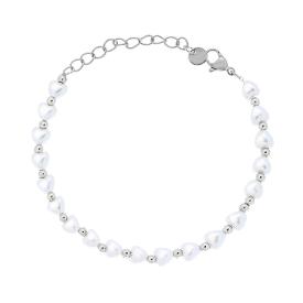 Bracciale con perle a forma di cuore alternate a palline lisce e lucide colore oro.