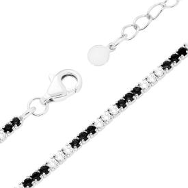 Bracciale Tennis con zirconi neri e bianchi incastonati alternati, su montatura 4 Griffe.