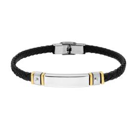 Bracciale da uomo maglia imperniata con targa con finitura lucida e satinata e accessori punti colore oro.
