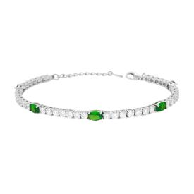 Bracciale tennis con con cubic zirconia ovali colore verde smeraldo alternati a bianchi montati su 4 Griffe.