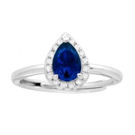 Anello con accessorio di forma ovale con cubic zirconia Blu Zaffiro centrale montato su 4 Griffe e cubic zirconia bianchi e Blu Za...