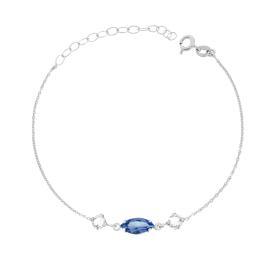 Bracciale con catena forzatina diamantata con accessorio centrale composto da cinque fiori con cubic zirconia bianchi montati su G...