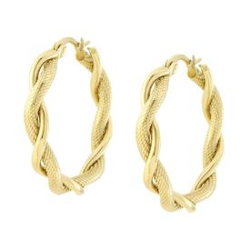 Orecchini a cerchio con decoro con lavorazione intagliata e con finitura lucida e brunita.