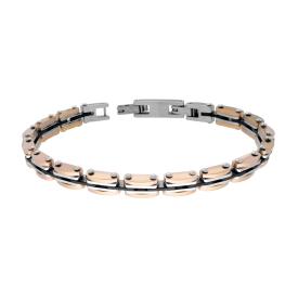 Bracciale con catena imperniata modello catena di bicicletta bicolore, rosè e nera, con finitura liscia e lucida.