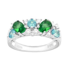 Anello fascia con cubic zirconia taglio tondo e ovale nei colori Blu Zaffiro, Acquamarina e bianco.