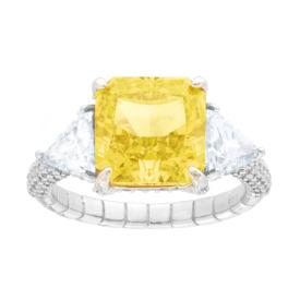 Anello Fascione con solitario quadrato bianco con moltitudine di cubic zirconia taglio marquise e cushion incastoanti a raggera in...
