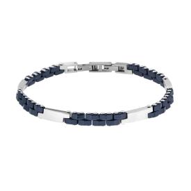 Bracciale catena imperniata con maglia in ceramica colore blu e in acciaio colore nero, finitura satinata e lucida.