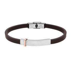 Bracciale da uomo in caucciù nero con Targa lucida, accessori scorrevoli colore rosè satinati e Crystal bianco incastonato.