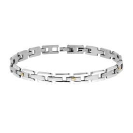 Bracciale con catena con maglia imperniata, piastre alternate a cilindretti con finitura liscia e lucida.