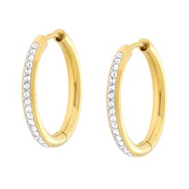 Orecchini a cerchio con con finitura liscia e lucida e crystal bianchi incastonati.