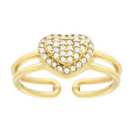 Anello con con doppio gambo lucido e accessorio centrale a forma di cuore con crystal bianchi incastonati.