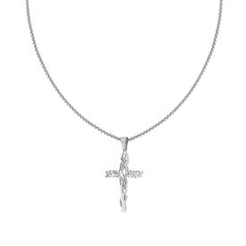 Collana con catena forzatina diamantata con accessorio pendente a forma di croce con Crystal colore bianco incastonati.
