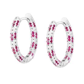 Orecchini cerchio con chiusura a scatto, cubic zirconia taglio marquise rosso rubino e bianco montati frontalmente e cubic zirconi...