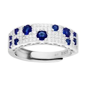 Anello contrarie con accessori all' estremità a forma di cuore, con cubic zirconia Blu Zaffiro e bianchi incastonati.