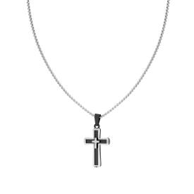 Collana con catena forzatina diamantata con accessorio pendente a forma di croce con finitura lucida e crystal nero incastonato.