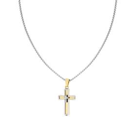 Collana con catena forzatina diamantata con accessorio a forma di croce con crystal incastonati con lavorazione pavè.