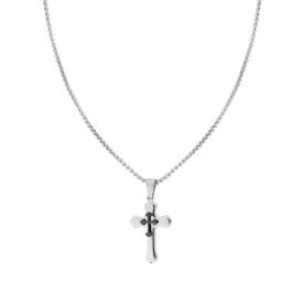 Collana con catena Forzatina Diamantata con accessorio pendente a forma di croce bicolore, nero e acciaio con finitura liscia e lu...