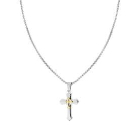 Collana con catena Veneziana Tonda con accessorio a forma di croce bicolore, con righe colore acciaio, con finitura satinata e luc...