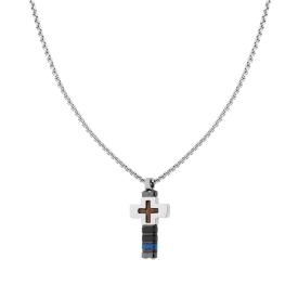 Collana con catena Veneziana tonda con accessorio pendente a forma di croce bicolore, acciaio e nero con dettagli rosè e finitura...