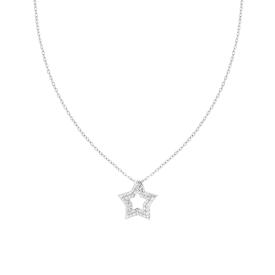 Collana con catena forzatina diamantata con accessori pendenti a forma di stella, palin e lucida e bombata con crystal bianchi inc...