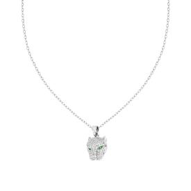 Collana con catena forzatina diamantata con accessorio a forma di Gatto con Crystal bianchi incastonati.