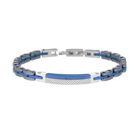 Bracciale con maglia imperniata colore blu con dettagli in ceramica colore antracite, accessorio targa con lavorazione satinata e ...