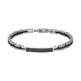 Bracciale con catena a maglia imperniata colore nero e acciaio, con accessorio targa con finitura satinata e lucida.
