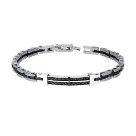 Bracciale tennis con crystal neri montati su 4 Griffe e accessorio centrale a forma di ancora con finitura liscia e lucida.