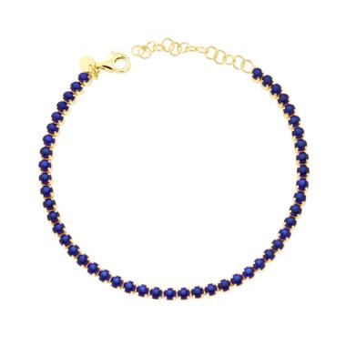 Bracciale Tennis con cubic Zirconia colore Blu Zaffiro su montatura 4 Griffe. Made in Italy