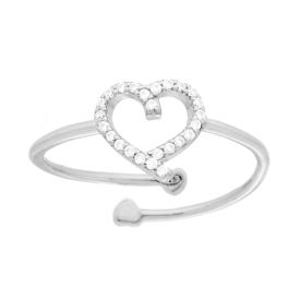 Anello aperto con accessorio a forma di cuore montato su 3 Griffe e cubic zirconia bianchi incastonati.