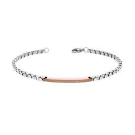 Bracciale con catena veneziana con accessorio targa con finitura liscia e lucida e punti vite colore rosè.