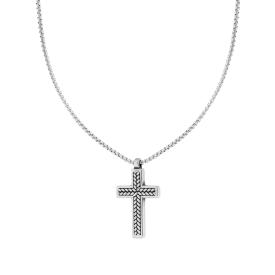 Collana con catena Veneziana tonda con accessorio pendente a forma di croce con decoro intrecciato brunito e finitura lucida.