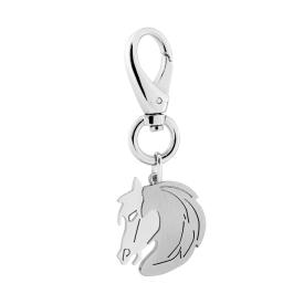 Portachiavi ad anello con accessorio pendente piastra rettangolare con soggetto traforato a forma di gufo, finitura liscia e lucid...