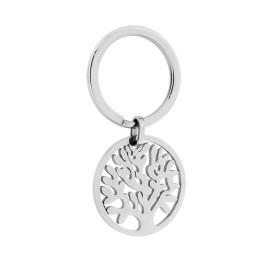 Accessorio pendente di forma tonda con finitura lucida e con albero della vita inciso a laser.