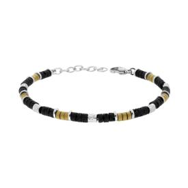 Bracciale con pietre colore nero pietra lavica cilindriche alternate ad accessori ovali con finitura satinata.