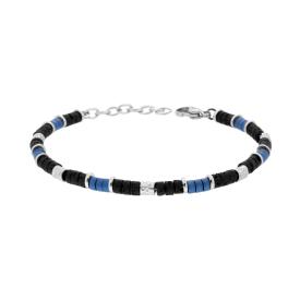 Bracciale con pietre colore Blu Lapislazzuli alternate ad accessori cilindrici con finitura lucida e martellata.