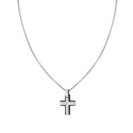 Collana con catena Forzatina Diamantata con accessorio pendente a forma di croce con dettaglio colore nero con finitura satinata.