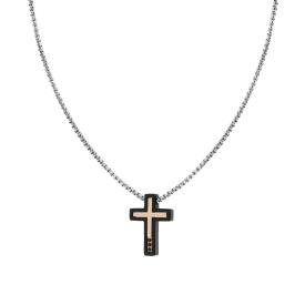 Collana con catena Forzatina Diamantata con accessorio pendente a forma di croce bicolore, nero e acciaio con finitura liscia e lu...