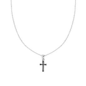 Collana con catena forzatina diamantata con accessorio pendente a forma di croce con finitura lucida e crystal nero incastonato.