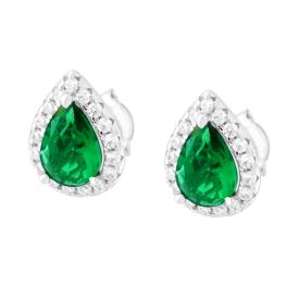 Orecchini Pendenti a Goccia con Due Zirconi Smeraldo Contornati da Zirconi Bianchi.