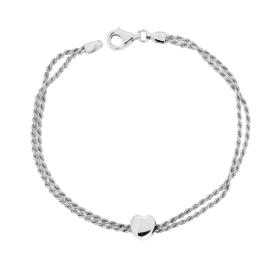 Bracciale con due fili catena forzatina diamantata con accessorio centrale a forma di cuore plain con finitura martellata e spazzo...