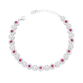 Bracciale Tennis Fiori con cubic zirconia carrè Rosso Rubino su montatura 4 Griffe e cubic Zirconia Bianchi incastonati intorno.<...