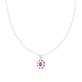 Collana con catena Forzatina diamantata con accessorio centrale fiorito con cubic zirconia Rosso Rubino e bianchi montati su 3 Gri...